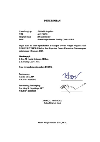 Angelina, Michella (2023) Perancangan interior fertility clinics di Bali (DI - 2374). Skripsi thesis, Universitas Tarumanagara.