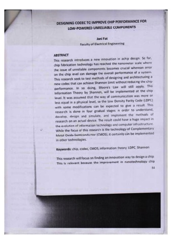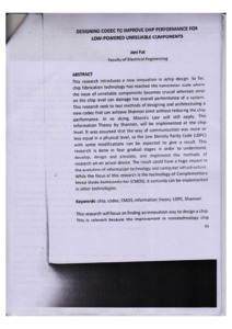 Fat, Joni DESIGNING CODEC TO IMPROVE CHIP PERFORMANCE FOR LOW POWERED UNRELIABLE COMPONENTS. Jurnal Teknik Elektro. -11.