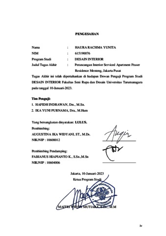 Yunita, Haura Rachma (2023) Perancangan interior serviced apartment fraser residence Menteng, Jakarta Pusat (DI -2393). Skripsi thesis, Universitas Tarumanagara.