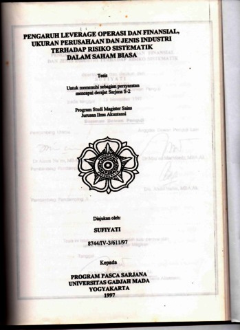 Sufiyati, tesis (1997) Pengaruh Leverage operasi dan Finansial ukuran perusahaan dan jenis industri terhadap resiko sistematik dalam saham biasa. Masters thesis, Universitas Tarumanagara.