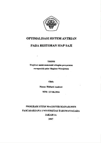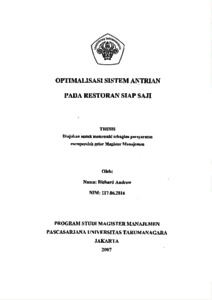 Richard Andrew, Tesis (2007) Optimalisasi SIstem Antrian pada Restoran Siap Saji. Masters thesis, Universitas Tarumanagara.