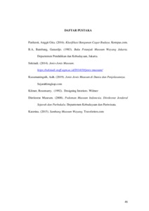 Abstrak — Negara Indonesia terdiri dari ribuan pulau dengan ciri khas budayanya masing-masing. Begitu juga dengan kesenian dan adat istiadatnya yang bermacammacam dari berbagai daerah di Indonesia. Dengan semakin majunya teknologi dan perubahan zaman saat ini, masyarakat Indonesia sudah banyak yang meninggalkan kebudayaan tradisional yang semakin tertinggal. Dengan begitu perlu adanya perawatan dan pelestarian peninggalan kebudayaan Indonesia, salah satu contohnya adalah warisan budaya leluhur yaitu kesenian wayang. Seperti museum penyimpanan wayang, seorang desainer harus mengerti bagaimana merancang museum dengan memperhatikan sirkulasi, pencahayaan, dan estetiika interior untuk menjaga kualitas dari koleksi wayang dan keamanan wayang itu sendiri agar tidak mengalami kerusakaan hingga menyebabkan kepunahan. Dengan begitu, penulis menggunakan Teknik pengumpulan data melalui studi literatur dan observasi menggunakan fitur media sosial untuk mendaptkan data yang penulis butuhkan untuk merancang sebuah museum yang baik, sehingga materi pamer yang tersimpan terjamin dan terjaga keamanannya. Dengan begitu museum wayang dapat menarik pengunjung baik wisatawan lokal maupun mancanegara. Kata kunci: kebudayaan, museum, wayang