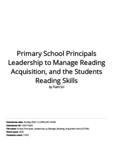 Tiatri, Sri and Jap, Tji Beng Primary School Principals Leadership to Manage Reading Acquisition, and the Students Reading Skills. Primary School Principals Leadership to Manage Reading Acquisition.