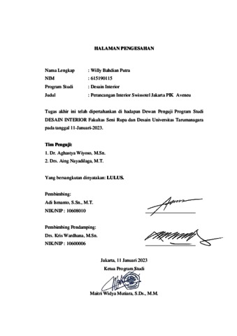 Putra, Willy Bahdian (2023) Perencangan interior Swissotel Jakarta PIK Avenue (DI - 2400). Skripsi thesis, Universitas Tarumanagara.