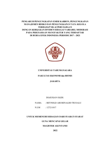 Ticoalu, Reynold Ari Renaldo (2023) PENGARUH PENGUNGKAPAN EMISI KARBON, PENGUNGKAPAN MANAJEMEN RISIKO DAN PENGUNGKAPAN TATA KELOLA TERHADAP NILAI PERUSAHAAN DENGAN KEBIJAKAN DIVIDEN SEBAGAI VARIABEL MODERASI PADA PERUSAHAAN MANUFAKTUR YANG TERDAFTAR DI BURSA EFEK INDONESIA PERIODE 2017 – 2021. Masters thesis, UNIVERSITAS TARUMANAGARA.