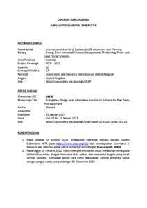 Gunardi, Gunardi Laporan Korespondesi: A Negative Pledge as an Alternative Solution to Achieve the Pari Passu Pro-Rata Parte. Internasional Journal of Sustainable Development and Planning.