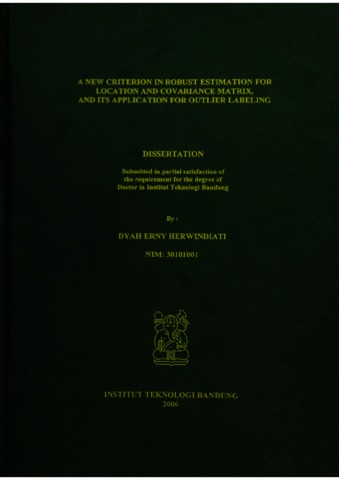 Dyah ErnyHerwindiati, Penulis Disertasi A NEW CRITERION IN ROBUST ESTIMATION FOR LOCATION AND COVARIANCE MATRIX, AND ITS APPLICATION FOR OUTLIER LABELING. A NEW CRITERION IN ROBUST ESTIMATION FOR LOCATION AND COVARIANCE MATRIX, AND ITS APPLICATION FOR OUTLIER LABELING.