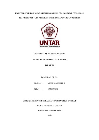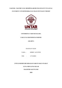 Agustini, Merry (2020) FAKTOR - FAKTOR YANG MEMPENGARUHI FRAUDULENT FINANCIAL STATEMENT: STUDI PENDEKATAN FRAUD PENTAGON THEORY. Masters thesis, UNIVERSITAS TARUMANAGARA.