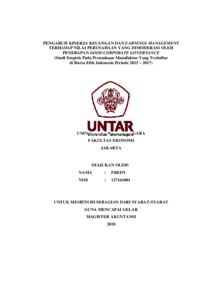 Fredy, Fredy (2018) PENGARUH KINERJA KEUANGAN DAN EARNINGS MANAGEMENT TERHADAP NILAI PERUSAHAAN YANG DIMODERASI OLEH PENERAPAN GOOD CORPORATE GOVERNANCE (Studi Empiris Pada Perusahaan Manufaktur Yang Terdaftar di Bursa Efek Indonesia Periode 2015 – 2017). Masters thesis, UNIVERSITAS TARUMANAGARA.