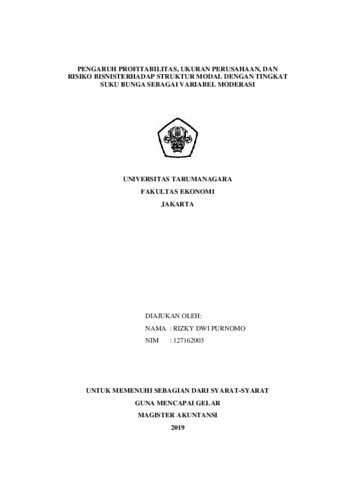 Purnomo, Rizky Dwi (2019) PENGARUH PROFITABILITAS, UKURAN PERUSAHAAN, DAN RISIKO BISNISTERHADAP STRUKTUR MODAL DENGAN TINGKAT PENGARUH PROFITABILITAS, UKURAN PERUSAHAAN, DAN RISIKO BISNISTERHADAP STRUKTUR MODAL DENGAN TINGKAT PENGARUH PROFITABILITAS, UKURAN PERUSAHAAN, DAN RISIKO BISNISTERHADAP STRUKTUR MODAL DENGAN TINGKAT SUKU BUNGA SEBAGAI VARIABEL MODERASI SUKU BUNGA SEBAGAI VARIABEL MODERASI SUKU BUNGA SEBAGAI VARIABEL MODERASI. Masters thesis, UNIVERSITAS TARUMANAGARA.