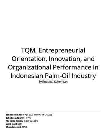Rousilita Suhendah, turnitin (2021) turnitin_TQM, Entrepreneurial Orientation, Innovation, and Organizational Performance in Indonesian Palm-Oil Industry. turnitin_TQM, Entrepreneurial Orientation, Innovation, and Organizational Performance in Indonesian Palm-Oil Industry.
