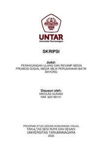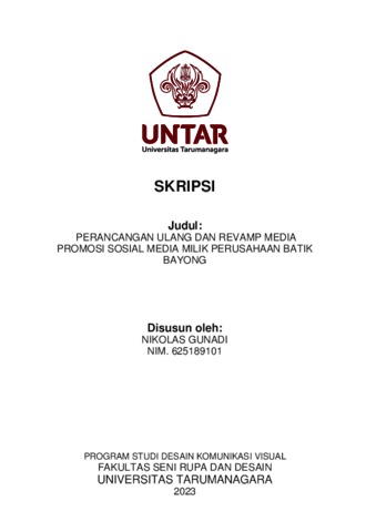 Gunadi, Nikolas (2023) Perancangan ulang dan revamp media promosi sosial media milik perusahaan batik Bayong (DKV - 2957). Skripsi thesis, Universitas Tarumanagara.