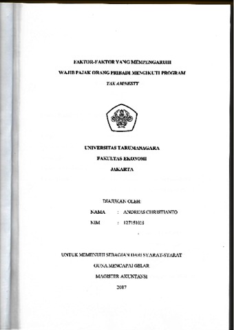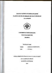 Christianto, Andreas (2017) FAKTOR-FAKTOR YANG MEMPENGARUHI WAJIB PAJAK ORANG PRIBADI MENGIKUTI PROGRAM TAX AMNESTY. Masters thesis, UNIVERSITAS TARUMANAGARA.