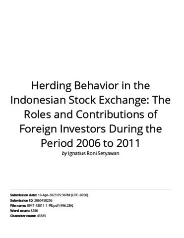 Iqnatius Roni S, Turnitin (2016) Turnitin Herding Behavior in the indonesian stock exchange The role and contributions.... Turnitin Herding Behavior in the indonesian stock exchange The role and contributions.....