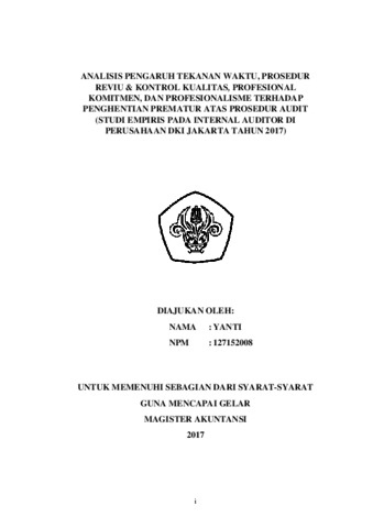 Tujuan penelitian ini adalah untuk menganalisis pengaruh tekanan waktu, prosedur reviu & kontrol kualitas, profesional komitmen, dan profesionalisme terhadap penghentian prematur atas prosedur audit. Data yang digunakan dalam penelitian ini diperoleh dengan cara menyebarkan kuesioner kepada para internal auditor yang bekerja pada perusahaan di Wilayah DKI Jakarta. Perusahaan yang menjadi sampel penelitian terdiri dari 7 perusahaan. Hasil analisis menunjukkan bahwa tekanan waktu berpengaruh positif dan signifikan terhadap penghentian prematur atas prosedur audit. Sedangkan prosedur reviu & kontrol kualitas, komitmen professional, dan profesionalisme mempunyai pengaruh negatif dan tidak signifikan terhadap penghentian prematur atas prosedur audit.