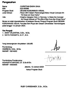 Saka, Christian Dawa (2023) Perancangan DKV dalam perancangan buku visual concept art "si buta dari gua hantu" (DKV - 2978). Skripsi thesis, Universitas Tarumanagara.