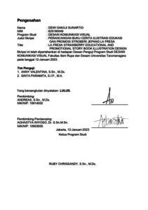 Sunartio, Dewi Sakaji (2023) Perancangan buku cerita ilustrasi edukasi dan promosi stroberi Jepan La Fresa (DKV - 2979). Skripsi thesis, Universitas Tarumanagara.
