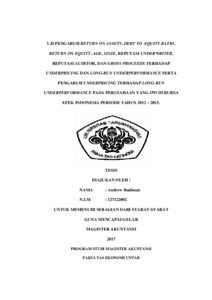Budiman, Andrew (2017) UJI PENGARUH RETURN ON ASSETS, DEBT TO EQUITY RATIO, RETURN ON EQUITY, AGE, SISZE, REPUTASI UNDERWRITER, REPUTASI AUDITOR, DAN GROSS PROCEEDS TERHADAP UNDERPRICING DAN LONG-RUN UNDERPERFORMANCE SERTA PENGARUH UNDERPRICING TERHADAP LONG-RUN UNDERPERFORMANCE PADA PERUSAHAAN YANG IPO DI BURSA EFEK INDONESIA PERIODE TAHUN 2012 – 2015. Masters thesis, UNIVERSITAS TARUMANAGARA.