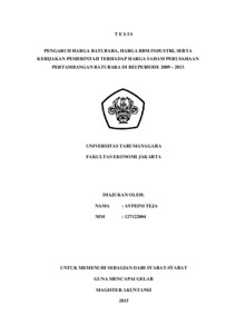 Teja, Ayfeini (2015) PENGARUH HARGA BATUBARA, HARGA BBM INDUSTRI, SERTA KEBIJAKAN PEMERINTAH TERHADAP HARGA SAHAM PERUSAHAAN PERTAMBANGAN BATUBARA DI BEI PERIODE 2009 – 2013. Masters thesis, UNIVERSITAS TARUMANAGARA.
