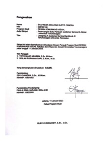 Candra, Syahreza Maulana Surya (2023) Perancangan buku panduan customer service di admisi Universitas Tarumanagara (DKV - 2975). Skripsi thesis, Universitas Tarumanagara.