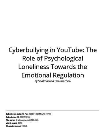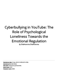 Cyberbullying in YouTube_ The Role of Psychological Loneliness Towards the Emotional Regulation.pdf Download (1MB) | Preview |