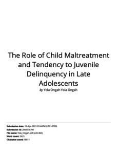 The Role of Child Maltreatment and Tendency to Juvenile Delinquency in Late Adolescents.pdf Download (1MB) | Preview |