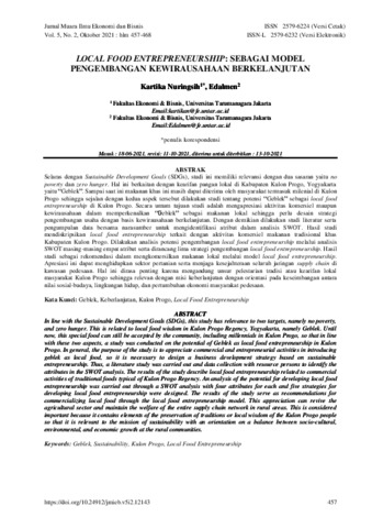 edalmen, Jurnal (2021) Local Food Entrepreneurship : Sebagai Model Pengembangan Kewirausahaan Berkelanjutan. Local Food Entrepreneurship : Sebagai Model Pengembangan Kewirausahaan Berkelanjutan.