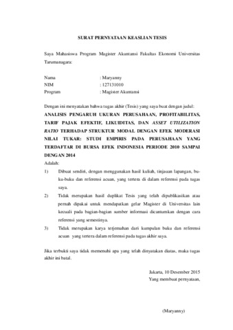 Maryanny, Maryanny (2015) ANALISIS PENGARUH UKURAN PERUSAHAAN, PROFITABILITAS, TARIF PAJAK EFEKTIF, LIKUIDITAS, DAN ASSET UTILIZATION RATIO TERHADAP STRUKTUR MODAL DENGAN EFEK MODERASI NILAI TUKAR: STUDI EMPIRIS PADA PERUSAHAAN YANG TERDAFTAR DI BURSA EFEK INDONESIA PERIODE 2010 SAMPAI DENGAN 2014. Masters thesis, UNIVERSITAS TARUMANAGARA.