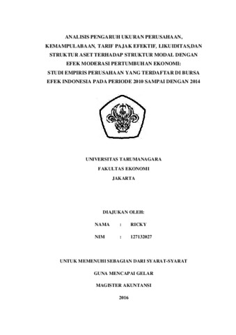 Ricky, Ricky (2015) ANALISIS PENGARUH UKURAN PERUSAHAAN, KEMAMPULABAAN, TARIF PAJAK EFEKTIF, LIKUIDITAS,DAN STRUKTUR ASET TERHADAP STRUKTUR MODAL DENGAN EFEK MODERASI PERTUMBUHAN EKONOMI: STUDI EMPIRIS PERUSAHAAN YANG TERDAFTAR DI BURSA EFEK INDONESIA PADA PERIODE 2010 SAMPAI DENGAN 2014. Masters thesis, UNIVERSITAS TARUMANAGARA.