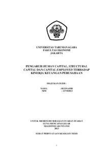 Rusnafhi, Rusnafhi (2013) PENGARUH HUMAN CAPITAL, STRUCTURAL CAPITAL DAN CAPITAL EMPLOYED TERHADAP KINERJA KEUANGAN PERUSAHAAN. Masters thesis, UNIVERSITAS TARUMANAGARA.