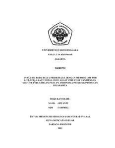 Riyanti, Riyanti (2011) EVALUASI BEDA BIAYA PERSEDIAAN DENGAN METODE LOT FOR LOT, EOQ, LEAST TOTAL COST, LEAST UNIT COST DAN DENGAN METODE PERUSAHAAN PADA PT. INDONESIA PAINTING PRODUCTS DI JAKARTA. Skripsi thesis, UNIVERSITAS TARUMANAGARA.