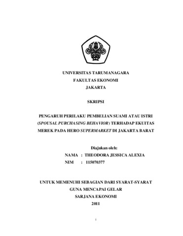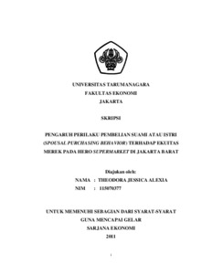 Jessica, Theodora (2011) PENGARUH PERILAKU PEMBELIAN SUAMI ATAU ISTRI (SPOUSAL PURCHASING BEHAVIOR) TERHADAP EKUITAS MEREK PADA HERO SUPERMARKET DI JAKARTA BARAT. Skripsi thesis, UNIVERSITAS TARUMANAGARA.