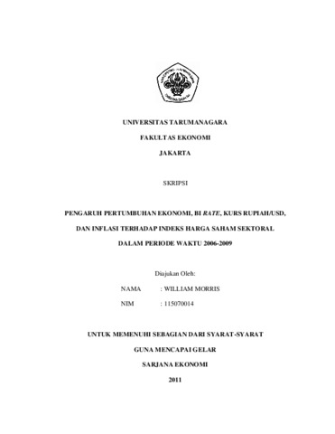 Moris, William (2011) PENGARUH PERTUMBUHAN EKONOMI, BI RATE, KURS RUPIAH/USD, DAN INFLASI TERHADAP INDEKS HARGA SAHAM SEKTORAL DALAM PERIODE WAKTU 2006-2009. Skripsi thesis, UNIVERSITAS TARUMANAGARA.