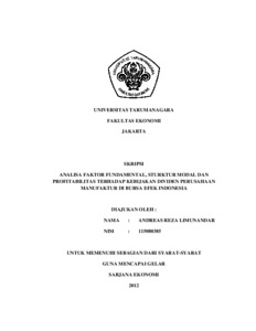 Limunandar, Andreas Reza (2012) ANALISA FAKTOR FUNDAMENTAL, STURKTUR MODAL DAN PROFITABILITAS TERHADAP KEBIJAKAN DIVIDEN PERUSAHAAN MANUFAKTUR DI BURSA EFEK INDONESIA. Skripsi thesis, UNIVERSITAS TARUMANAGARA.