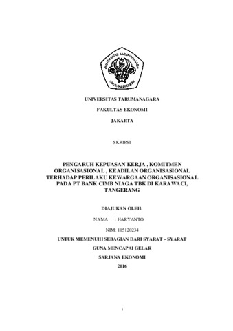 Haryanto, Haryanto (2016) PENGARUH KEPUASAN KERJA , KOMITMEN ORGANISASIONAL , KEADILAN ORGANISASIONAL TERHADAP PERILAKU KEWARGAAN ORGANISASIONAL PADA PT BANK CIMB NIAGA TBK DI KARAWACI, TANGERANG. Skripsi thesis, UNIVERSITAS TARUMANAGARA.