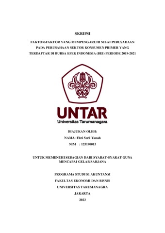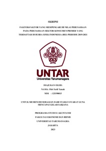 Serli, Fitri (2023) FAKTOR-FAKTOR YANG MEMPENGARUHI NILAI PERUSAHAAN PADA PERUSAHAAN SEKTOR KONSUMEN PRIMER YANG TERDAFTAR DI BURSA EFEK INDONESIA (BEI) PERIODE 2019-2021. Skripsi thesis, Universitas Tarumanagara.