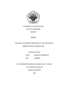 Sholikah, Nikmatus (2012) PELAKSANAAN PROYEK PERUMAHAN ILAGO PARAMOUNT SERPONG DENGAN METODE CPM. Skripsi thesis, UNIVERSITAS TARUMANAGARA.