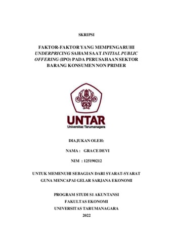 Devi, Grace (2022) FAKTOR-FAKTOR YANG MEMPENGARUHI UNDERPRICING SAHAM SAAT INITIAL PUBLIC OFFERING (IPO) PADA PERUSAHAAN SEKTOR BARANG KONSUMEN NON PRIMER. Skripsi thesis, Universitas Tarumanagara.