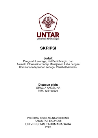 Angelina, Gracia (2023) PENGARUH LEVERAGE, NET PROFIT MARGIN, DAN ASIMETRI INFORMASI DENGAN KOMISARIS INDEPENDEN SEBAGAI VARIABEL MODERASI. Skripsi thesis, Universitas Tarumanagara.