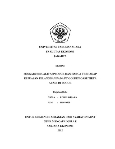 Wijaya, Robin (2012) PENGARUH KUALITASPRODUK DAN HARGA TERHADAP KEPUASAN PELANGGAN PADA PT GOLDEN OASE TIRTA ABADI DI BOGOR. Skripsi thesis, UNIVERSITAS TARUMANAGARA.