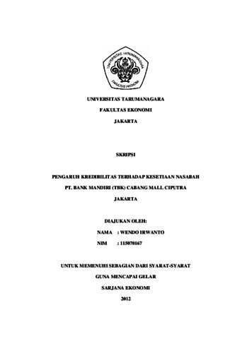 Irwanto, Wendo (2012) PENGARUH KREDIBILITAS TERHADAP KESETIAAN NASABAH PT. BANK MANDIRI (TBK) CABANG MALL CIPUTRA JAKARTA. Skripsi thesis, UNIVERSITAS TARUMANAGARA.