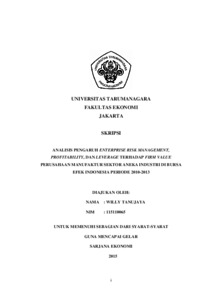 Tanujaya, Willy (2015) ANALISIS PENGARUH ENTERPRISE RISK MANAGEMENT, PROFITABILITY, DAN LEVERAGE TERHADAP FIRM VALUE PERUSAHAAN MANUFAKTUR SEKTOR ANEKA INDUSTRI DI BURSA EFEK INDONESIA PERIODE 2010-2013. Skripsi thesis, UNIVERSITAS TARUMANAGARA.