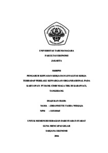 Widjaja, Zhiannette Tasha (2016) PENGARUH KEPUASAN KERJA DAN LOYALITAS KERJA TERHADAP PERILAKU KEWARGAAN ORGANISASIONAL PADA KARYAWAN PT BANK CIMB NIAGA TBK DI KARAWACI, TANGERANG. Skripsi thesis, UNIVERSITAS TARUMANAGARA.