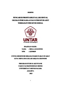 Augustine, Mega (2023) PENGARUH PROFITABILITAS, LIKUIDITAS, UKURAN PERUSAHAAN DAN STRUKTUR ASET TERHADAP STRUKTUR MODAL. Skripsi thesis, Universitas Tarumanagara.
