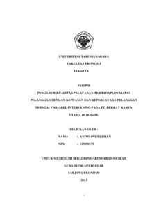 Lidian, Andrianus (2013) PENGARUH KUALITAS PELAYANAN TERHADAPLOYALITAS PELANGGAN DENGAN KEPUASAN DAN KEPERCAYAAN PELANGGAN SEBAGAI VARIABEL INTERVENING PADA PT. BERKAT KARYA UTAMA DI BOGOR. Skripsi thesis, UNIVERSITAS TARUMANAGARA.