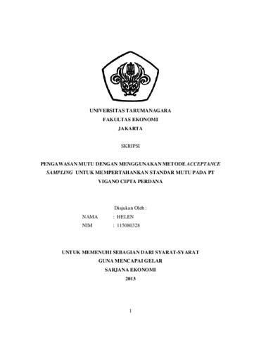 Helen, Helen (2013) PENGAWASAN MUTU DENGAN MENGGUNAKAN METODE ACCEPTANCE SAMPLING UNTUK MEMPERTAHANKAN STANDAR MUTU PADA PT VIGANO CIPTA PERDANA. Skripsi thesis, UNIVERSITAS TARUMANAGARA.