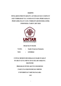 Milenia, Sarah (2023) PENGARUH PROFITABILITAS, LEVERAGE, UKURAN PERUSAHAAN DAN CASH HOLDING TERHADAP PERATAAN LABA (INCOME SMOOTHING). Skripsi thesis, Universitas Tarumanagara.