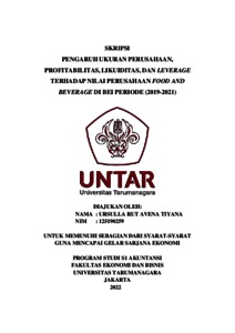 Rat, Ursulla (2022) PENGARUH UKURAN PERUSAHAAN, PROFITABILITAS, LIKUIDITAS, DAN LEVERAGE TERHADAP NILAI PERUSAHAAN FOOD AND BEVERAGE DI BEI PERIODE (2019-2021). Skripsi thesis, Universitas Tarumanagara.