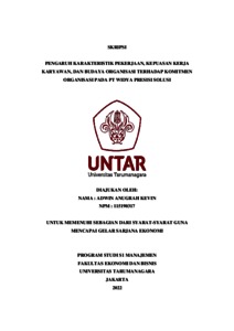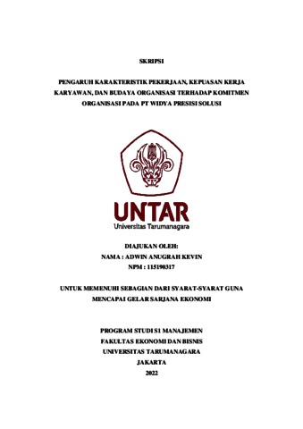 Anugrah, Adwin (2022) PENGARUH KARAKTERISTIK PEKERJAAN, KEPUASAN KERJA KARYAWAN, DAN BUDAYA ORGANISASI TERHADAP KOMITMEN ORGANISASI PADA PT WIDYA PRESISI SOLUSI. Skripsi thesis, Universitas Tarumanagara.