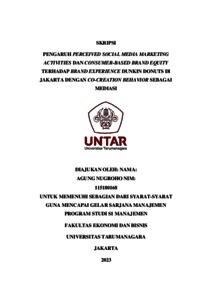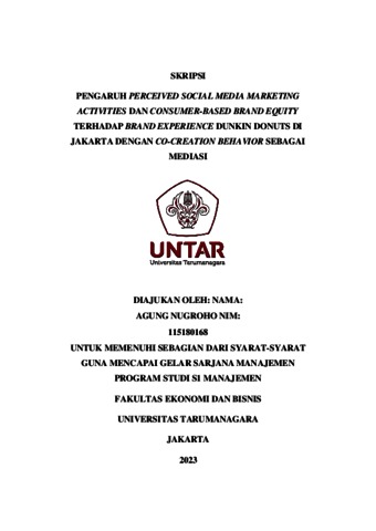 Nugroho, Agung (2023) PENGARUH PERCEIVED SOCIAL MEDIA MARKETING ACTIVITIES DAN CONSUMER-BASED BRAND EQUITY TERHADAP BRAND EXPERIENCE DUNKIN DONUTS DI JAKARTA DENGAN CO-CREATION BEHAVIOR SEBAGAI MEDIASI. Skripsi thesis, Universitas Tarumanagara.